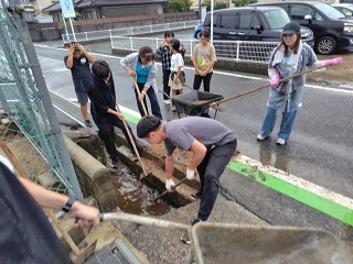 サッサカの会場準備に先立ち、駅家夏祭りサッサカ実行委員の方々にグラウンドを整備していただきました。