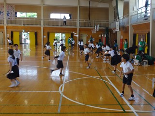 4月30日(水)に、毎年2年生が運動会で披露している駅家こども音頭の踊り方を、佐藤都子先生に教わりました。