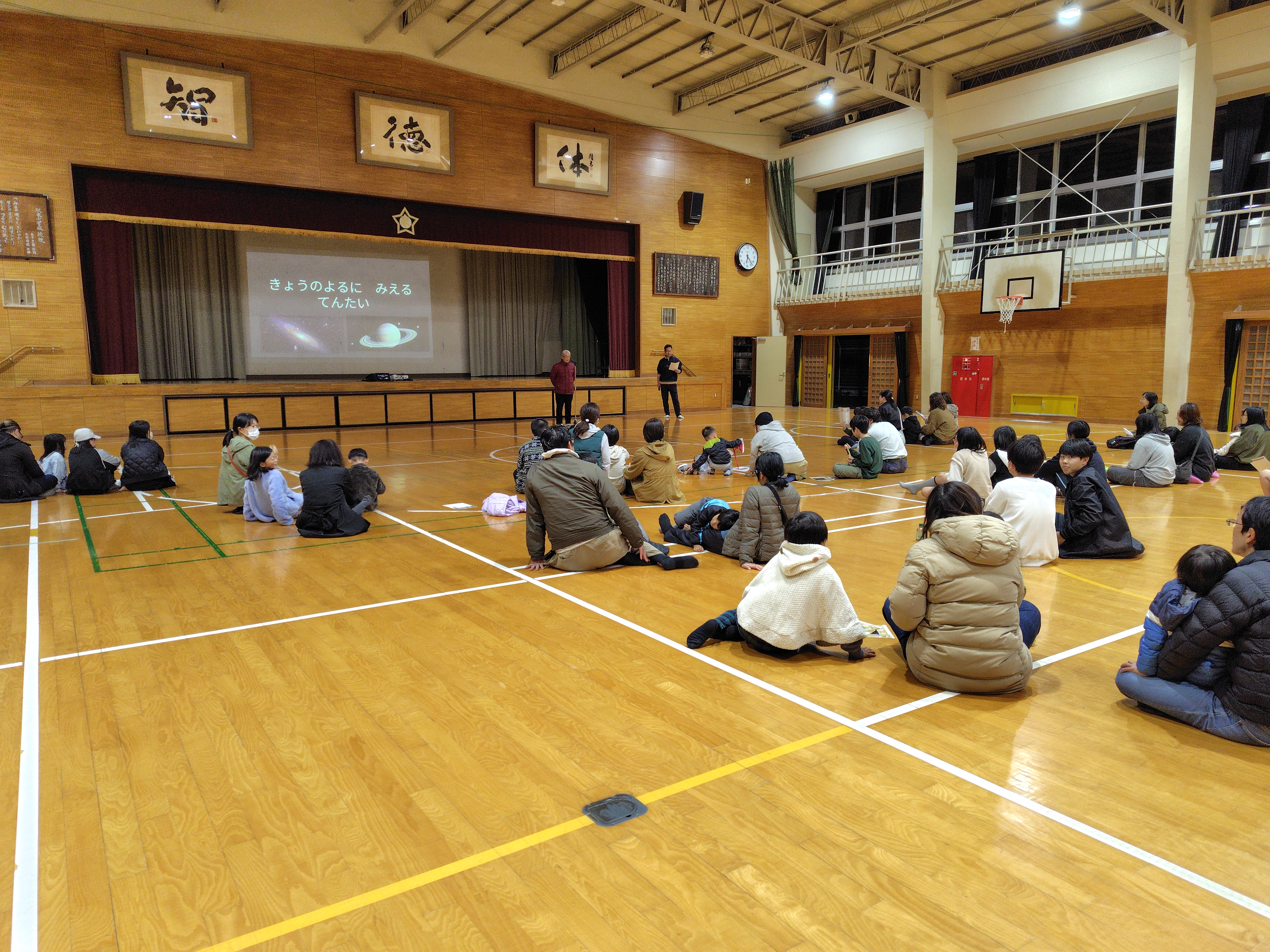 グラウンドに天体望遠鏡を設置し、この日は土星と白鳥座のくちばし「アルビレオ」を観察しました。