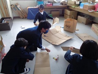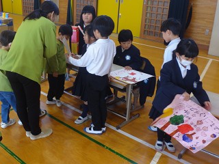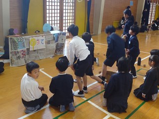 12 月には、児童会のウォークラリーがあります。1~5年生までが楽しめる遊びを6年生が企画します。班の仲間と協力してみんなが楽しめるコーナーを一生懸命作っています。