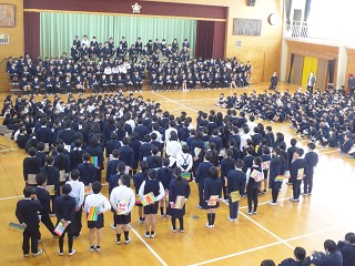 3月25日修了式がありました。1年間頑張ったことを代表の子が前項の前で発表しました。その後、各学年の代表が修了証を校長先生から受け取りました。