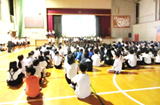 10月16日(木)の朝会では、3年生が外国語活動で学んだことを生かして、英語の先生クイズをつくり、全校に披露しました。好きなもの(色・スポーツ・果物)についてヒントを出し、どの先生のことかをたずねる内容でした。とてもなめらかな英語の発音に加え、大きな声で堂々と発表する姿は、素晴らしかったです。体育館が大きな歓声に包まれた、楽しいひとときになりました。また、児童会の準備や司会進行が大変スムーズで、全校のお手本となっています。