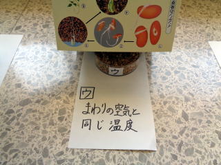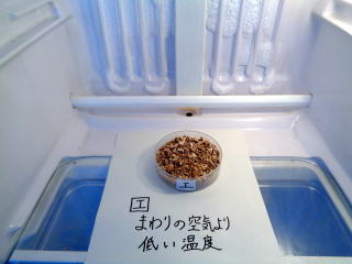 ウ 箱をかぶせてまわりと同じ温度にする エ 冷蔵庫に入れて,温度を低くする