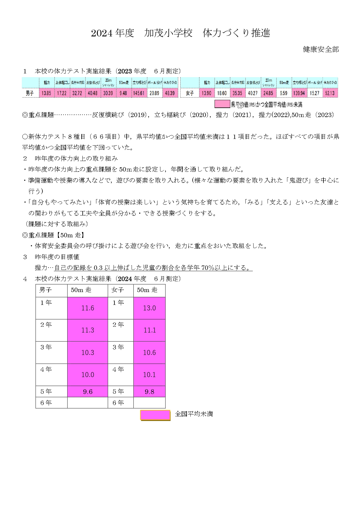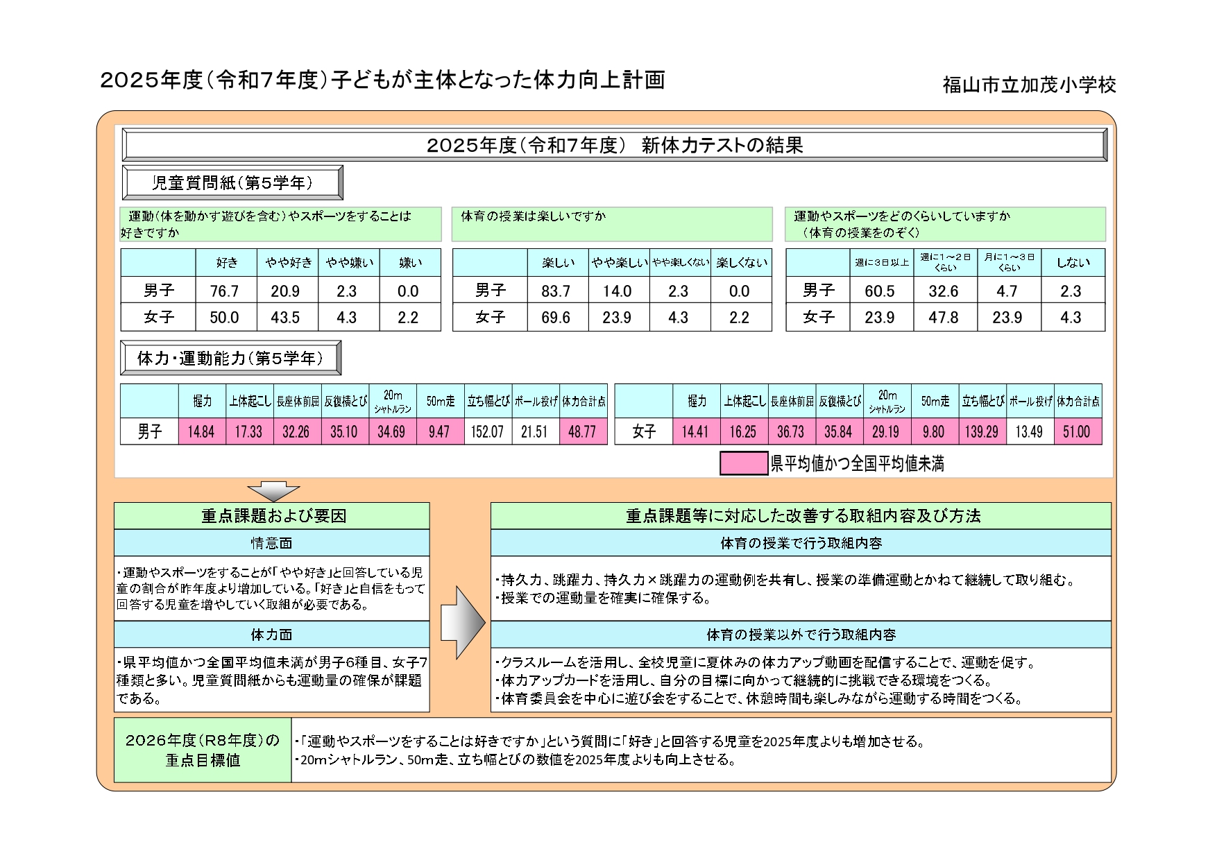 体力つくり改善計画・子どもが主体となった体力の向上計画