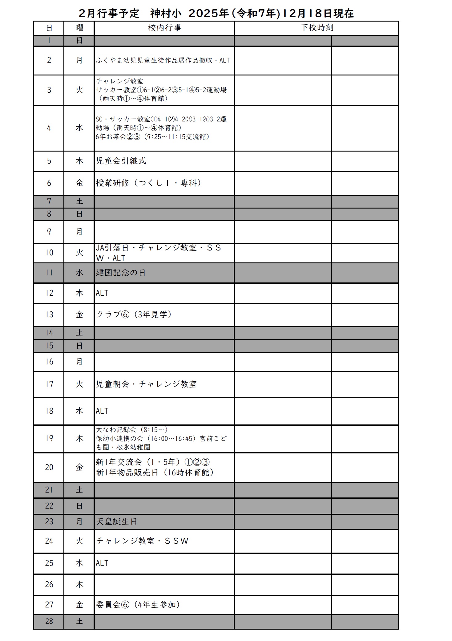 2026年2月の行事予定 2026年1月の行事予定 2025年12月の行事予定 2025年11月の行事予定 2025年10月の行事予定 2025年9月の行事予定(訂正版) 2025年8月の行事予定 2025年7月の行事予定 2025年6月の行事予定 2025年5月の行事予定