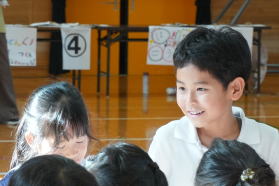 | 2025.10.8 アタックプレルボール ネット型の新しいボールゲーム「アタックプレルボール」を題材に4年生が学習しています。一見バレーボールのようですが小学生では難しいことから、2回はボールを持ってよい、地面にバウンドさせてもよいなどのルールがあります。自分たちで練習を考えたり、相互に審判もしたりしながら楽しく学習しているようです。 |