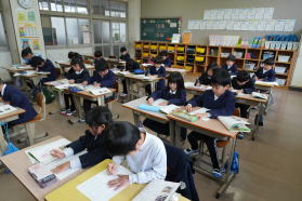 | 2026.1.13 書初め大会 1年生と2年生は教室で、3年生以上は体育館で新年の書初め大会を行いました。静かな空間で、気持ちを集中してじっくりと字を書いている雰囲気がとても素敵でした。 |