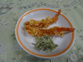 | 2026.1.14 えびのあられ揚げ 1月の給食にはお正月にちなんだ献立がいくつかありますが、この日は「えびのあられ揚げ」がでました。給食室の先生方が衣に色とりどりのあられをていねいにつけて揚げてくださっており、大人気メニューです。子どもたちは大喜びで食べていました。 |