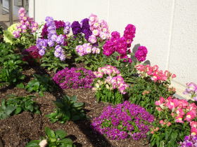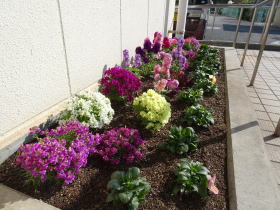 | 2026.1.19 春に向けて 体育館西側の小さい花壇へ、新たに花の苗を植えました。苗がよく育っているためすでに花が咲いているものがあり、パンジーなどはこれから春に向けて花を咲かせてくれることでしょう。この春も花いっぱいの花壇になりますように。 |