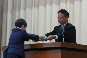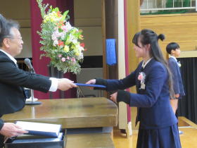 | 2025.3.13 培遠中学校生徒会からの贈り物 春日小学校を卒業し、現在は培遠中学校で生徒会役員を務めている3名の生徒が本校を訪れ、来週卒業する6年生一人に一つずつのしおりと学級数分の写真立てを届けてくれました。培遠中学校で行っているボランティア活動を多くの人に知ってほしいとの思いから今回の取り組みを考えたのだそうです。卒業生がたくましく活躍してくれていること、そして母校を心にとめていてくれることを本当にうれしく思いました。 |
