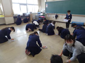 | 2025.5.9 避難訓練 今年最初の避難訓練を行いました。今回は地震を想定しての訓練です。地震がおさまるまで机の下で身を守る、地震がおさまったら静かに集合場所まで避難することがしっかりとできていました。万が一に備えて、今後も避難訓練を行っていくこととしています。 |