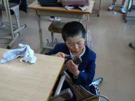 | 2026.1.28 ミラクル!ミラーワールド 5年生が図工の時間に鏡を生かしての造形を行っています。鏡のようによく映る板を2枚立てることで立体に奥行きが出てきます。子どもたちは目線を低くしてのぞきこみながら作品作りを行っていました。 |