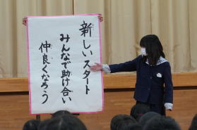 | 2026.2.10 新しいテーマで 5年生役員を中心とした児童会の新しいテーマが決まりました。さっそく2月の月目標の発表があり、各学級からの代表者会もスタートするそうです。新しい役員さんのやる気がよく伝わってきます。 |