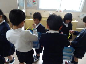 | 2026.2.17 感染症予防をみんなで このところ発熱などでの欠席者数が増えています。このため学校全体で休憩時間終わりや給食開始前などに手洗いうがいを行っています。頑張って健康を保ちたいものです。 |