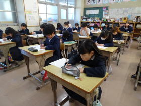 | 2026.3.10 漢字・計算がんばりました 本年度最後の漢字検定を行いました。この1年、毎月漢字検定と計算検定を行ってきましたが、確実に積み上げの成果が見られています。これからもこつこつと努力を積み重ねて、学力もさらに高めていきましょう。 |