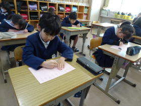 | 2026.1.13 書初め大会 1年生と2年生は教室で、3年生以上は体育館で新年の書初め大会を行いました。静かな空間で、気持ちを集中してじっくりと字を書いている雰囲気がとても素敵でした。 |