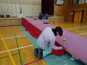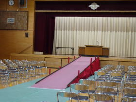 | 2026.3.11 卒業式の会場づくり 今年の卒業式会場に、技術員の皆さんがスロープを設置してくださいました。6年生が胸を張ってこのスロープを歩く様子は、きっと多くの方々にみていただけることでしょう。 |