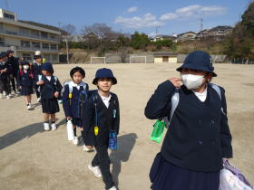 | 2026.3.12 来年も6年生を中心に 本年度最後の地域別児童会を行いました。それぞれの登校班のメンバーや新しい班長さんなどを確認して班ごとに下校しました。新年度もみんなで安全に登校しましょうね。 |