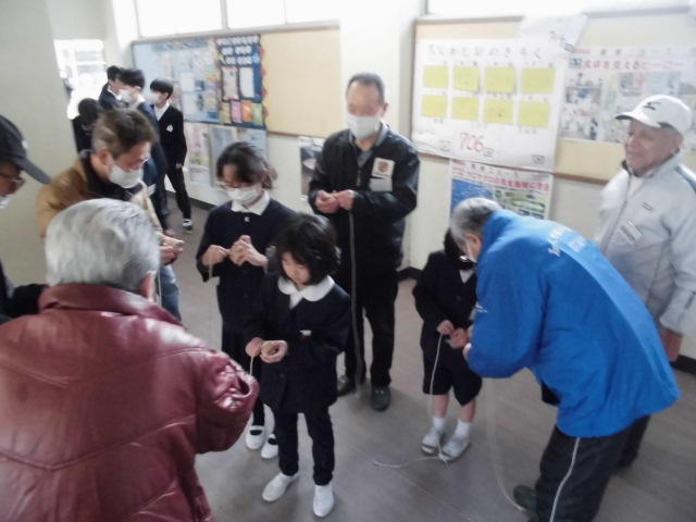 たくさんの地域の方に来ていただきました。1年生と6年生がグループになって、 地域のみなさんと一緒に昔の遊びを体験させていただきました。 1年生も6年生も地域の方も、みんな楽しそうな笑顔でした。 お忙しい中お越しくださった地域の皆様、楽しい時間を過ごさせていただき、ありがとうございます。