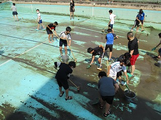 3年間たまった泥を落として,きれいなプールによみがえりました。