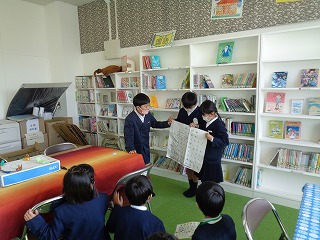 図書簿ボランティアの方や民生委員の方のご協力により、読み聞かせをしていただいています。