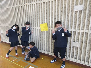 得点を取るためにチームで作戦も考えました。 自然と、アドバイスや応援の声も出て全員で楽しみながら学習できました。 -