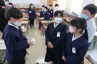 教室に帰った後も「みんなのためを思って活動してるって言ってたよ。」「民生委員って大人だったら誰でもなれるんよ!大人になったら民生委員になろうかな?」など話す姿がみられました。