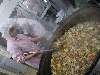 4つの釜をフル回転し、計画に沿って給食を調理しました。