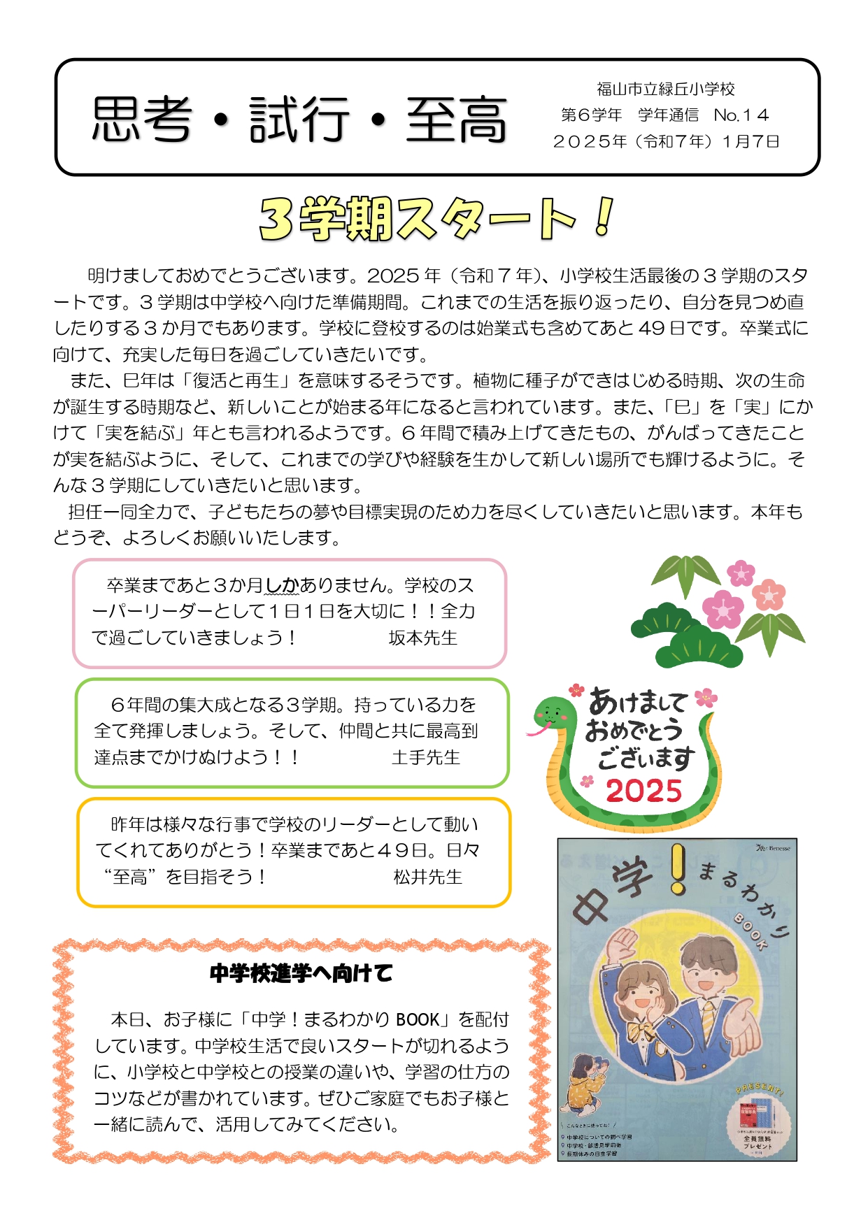 6年 学年通信 第14号