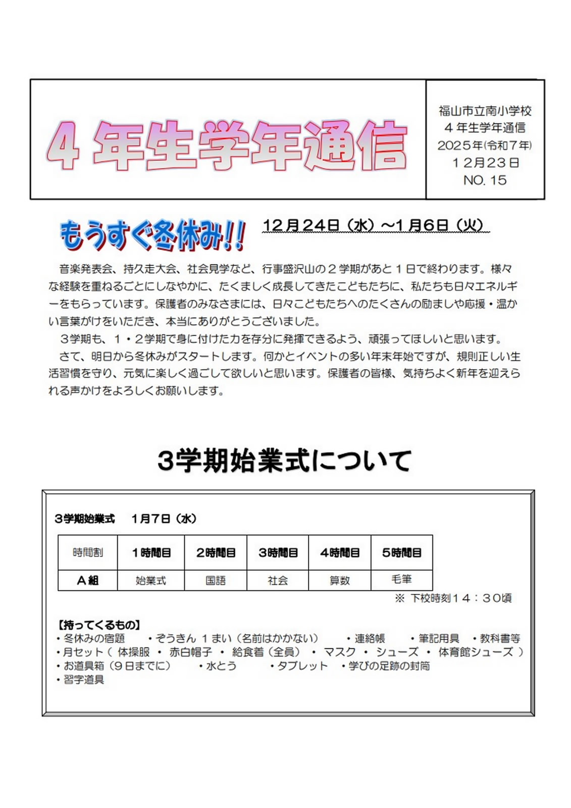4年生学年通信 No.15
