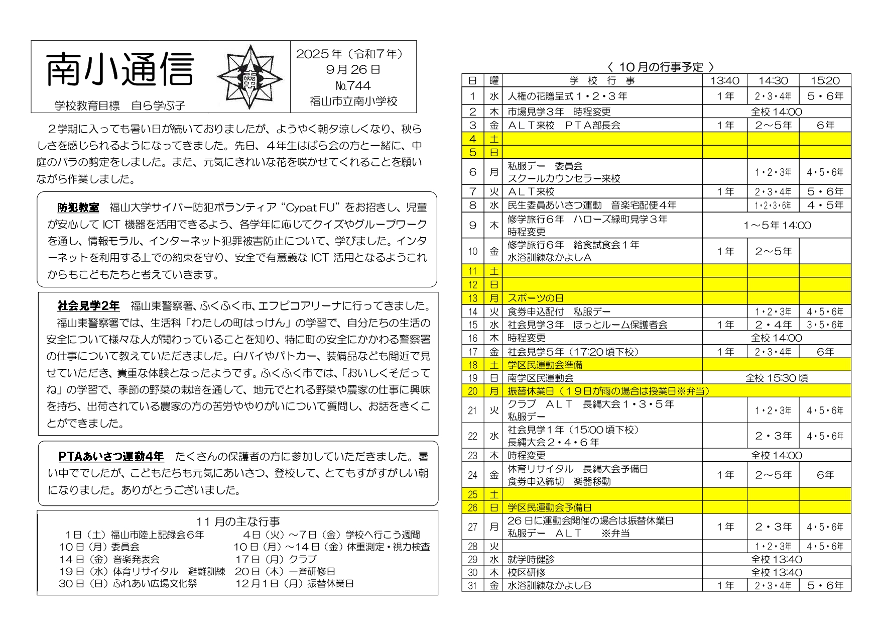 南小通信 744号