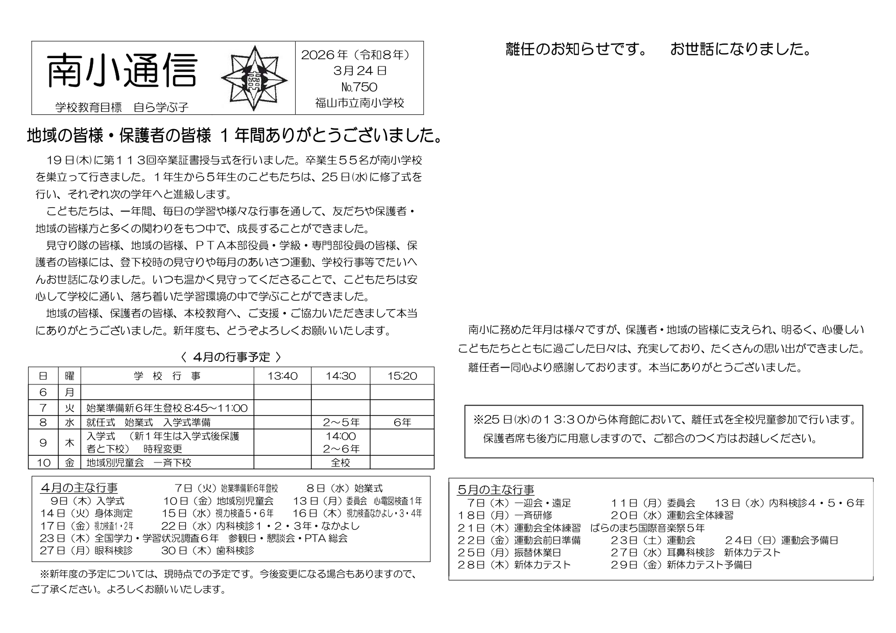 南小通信 750号