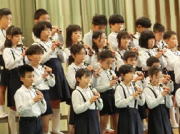 33名の新入生を迎えました。来賓の方々がたくさんご臨席くださり、お祝いの言葉をいただきました。「ありがとうございます」とすすんで返事ができるすばらしい1年生です。式では、2・6年生が、お迎えの言葉や歌声を体育館いっぱいに響かせてくれました。式の前後では、6年生が、「トイレはここを使ってね」等、温かくお世話をすることができました。