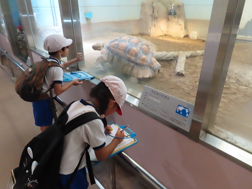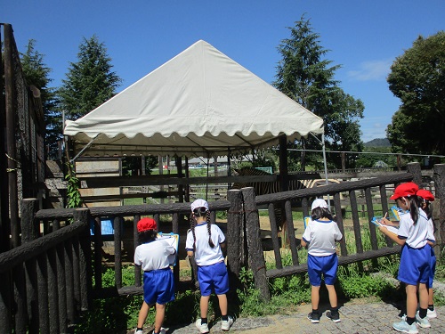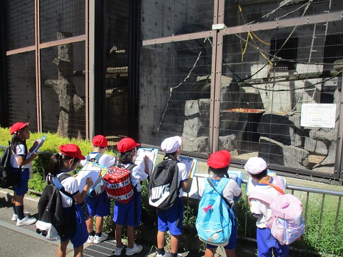9月18日に、1年生は社会見学で福山市立動物園へ行きました。園内の動物たちを見て回りながら、特徴や気付いたことをたくさん見つけていました。
