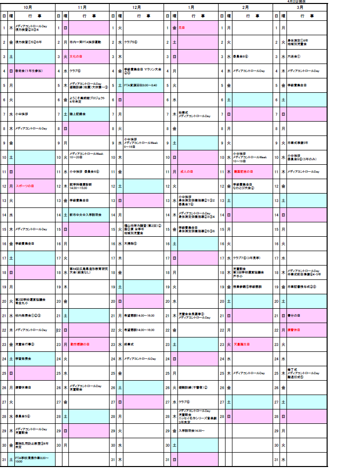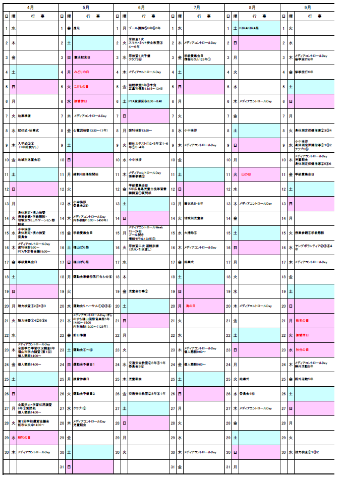月別行事予定