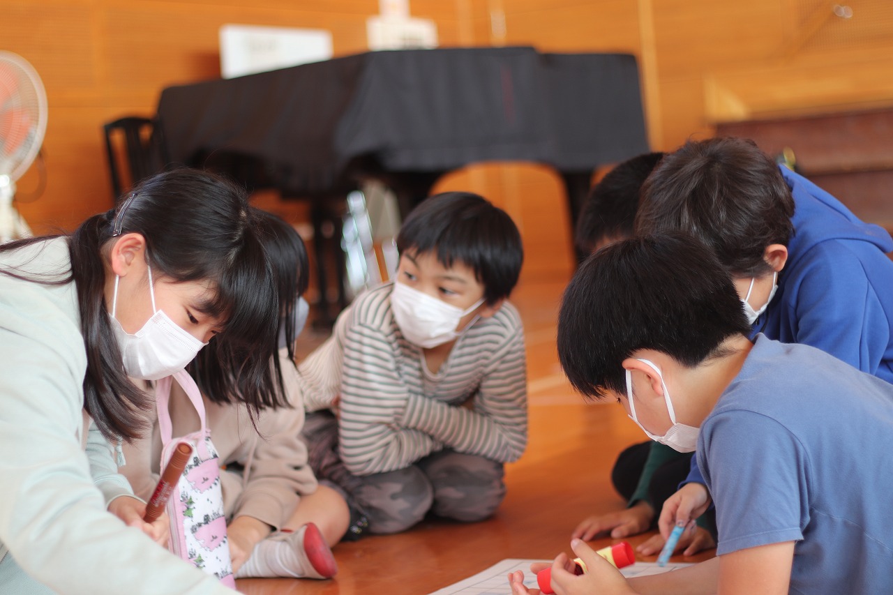 毎週,金曜日はリフレクションの時間。高学年全員でサークルになって,一人一人の学びをみんなに伝えていく大切な時間です。聞いている子も真剣です。同じテーマで,同じ物事をやっていても感じ方や考え方はそれぞれ違っています。それぞれの学びを共有しています。