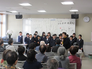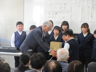 2月26日(木)に4年生が地域交流会を開きました。これまで、総合的な学習の時間に地域の方々と福祉について学んできました。 そのまとめの学習として、自分たちが地域の方に喜んでもらえるための交流会を計画し取り組みました。プログラムやゲームコーナーを考えコツコツと準備してきました。 当日は交流館にたくさんの笑顔が溢れました。
